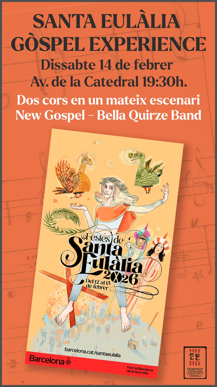 Enguany tornem a participar al concert que tindrà lloc a la Plaça de la Catedral al Santa Eulàlia Gòspel Experience.